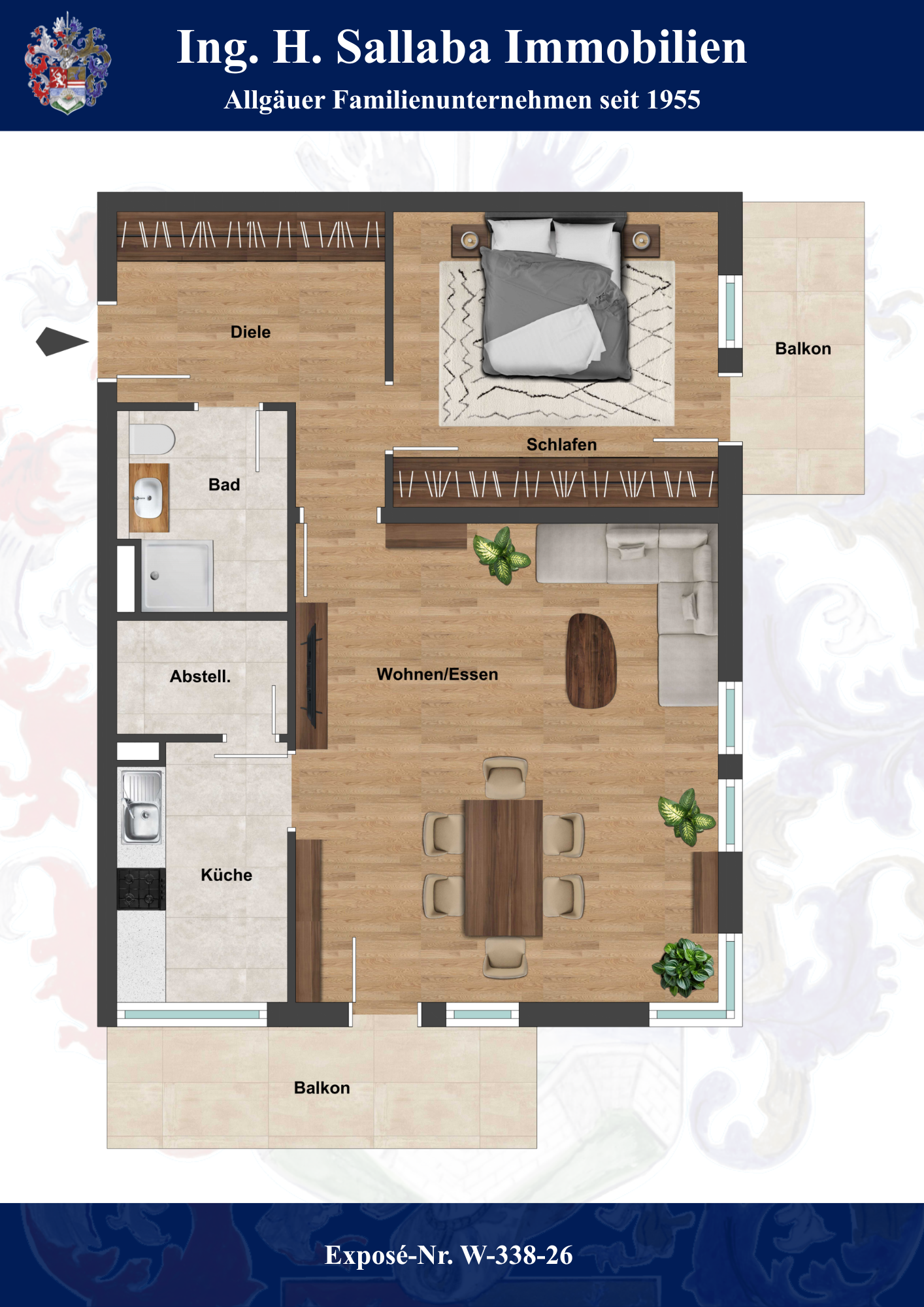 Zwei Balkone sorgen für Lebensqualität zu jeder Tageszeit: Starten Sie mit der Morgensonne am Schlafzimmer in den Tag oder entspannen Sie bis zum Abend auf dem Südbalkon am Wohnbereich. Die Küche bietet durch die integrierte Speisekammer cleveren Stauraum und grenzt direkt an das weitläufige Wohnzimmer an.