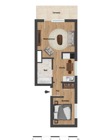 Diese gepflegte Wohnung im Hochparterre überzeugt durch eine durchdachte Raumaufteilung, helle Räume und ein angenehmes Wohnambiente. Auf rund 44 m² Wohnfläche bietet sie, als Hauptwohnbereich, ein gemütliches Wohnzimmer mit Zugang zum überdachten Balkon/Terrasse mit Blick hinaus über den grünen Gemeinschaftsgarten, über die gemütliche Nachbarschaft, bis hin zum Grünten. Desweiteren besitzt sie eine separate Küche mit kleinem Essbereich, ein ruhiges Schlafzimmer sowie ein Badezimmer mit WC und Badewanne. Der hochwertige, durchgelegte Vinylboden in dunkler Holzoptik verleiht der Wohnung eine moderne und zugleich pflegeleichte Note.