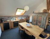 Wonach das Haus von Außen sich im Allgäuer Landhausstil perfekt der dörflichen Umgebung anpasst, findet man im Inneren des Hauses moderne, doch passende Einrichtung und hochwertige Ausstattung. Hier wurde mit Liebe zum Detail auf viel Komfort und Annehmlichkeiten geachtet und auf Wunsch können sämtliche Einrichtungsgegenstände, wie z.B. Einbauküche, Schränke, Sofa & Tische, sowie auch der Ofen und – als besonderes Highlight – eine eigene Sauna übernommen werden.